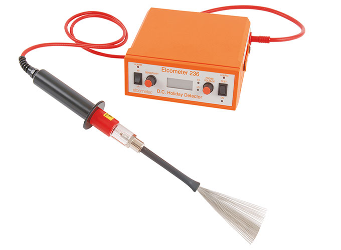 连续直流电火花检漏仪如Elcometer236,需要直接连接到导电基板。Elcometer 236 的电压和灵敏度全程由用户自己设置,仪器有两个版本:15kV 和 30kV。